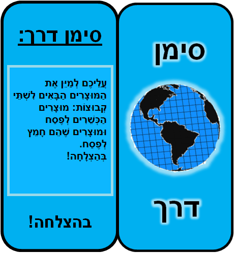 כשר לפסח- לפניכם מוצרים שונים. רוצו בין הקונוסים (כל אחד בתורו) ושימו כל מוצר במקום המתאים- כשר לפסח או חמץ. בהצלחה!!!