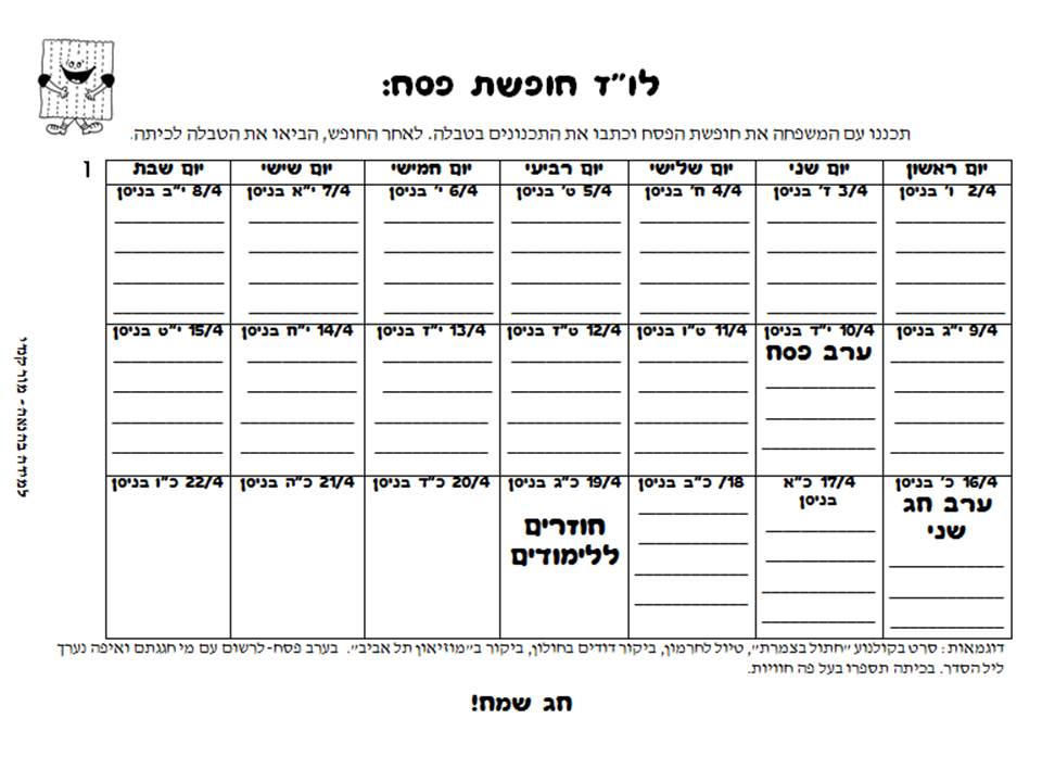 התלמידים מתכננים מראש עם המשפחה שלהם את החופש ובמהלך החופש עוקבים אחרי הלו”ז.