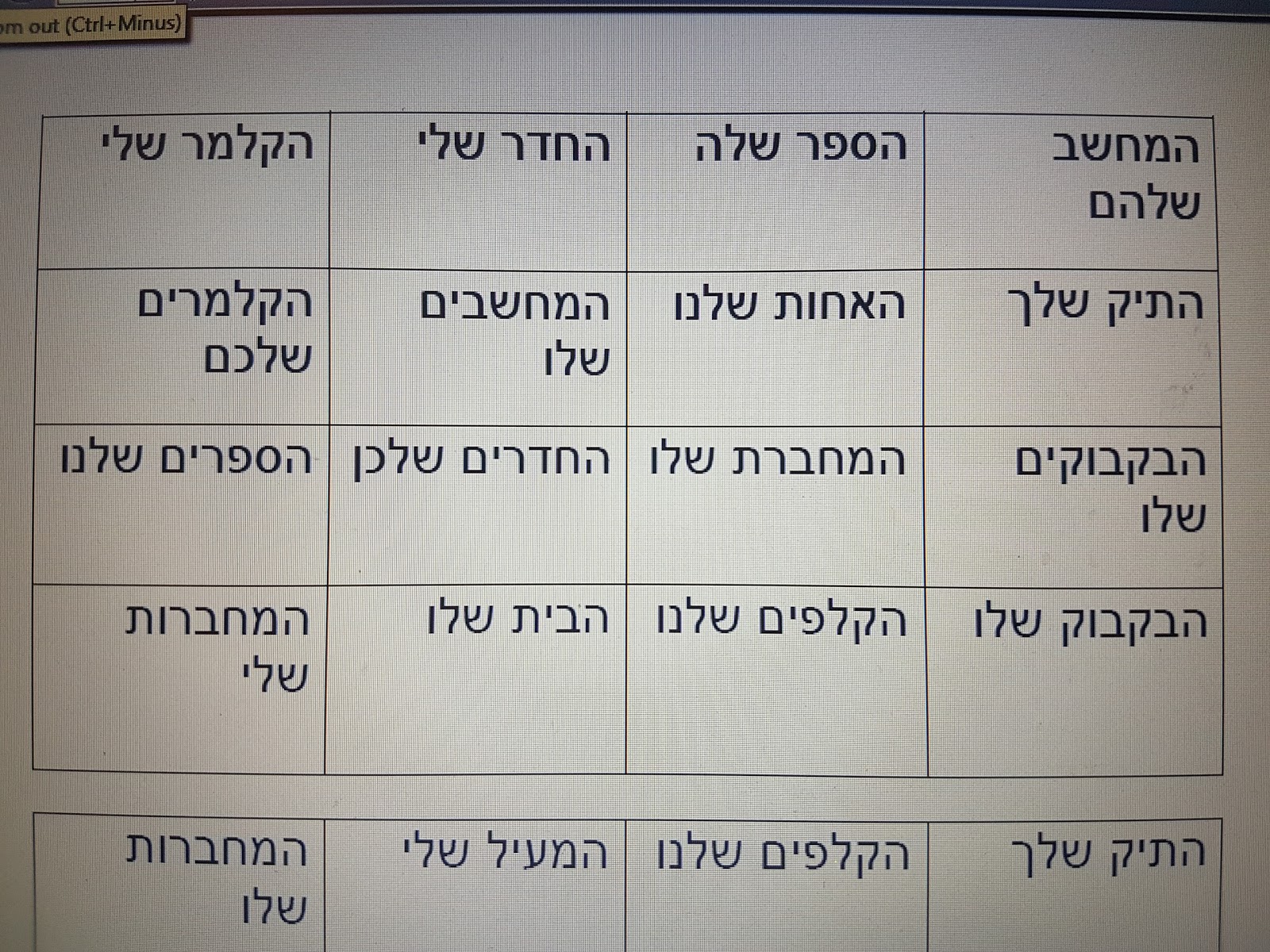 מצרפת את אחד המשחקים שבניתי באותה תקופה- בינגו כינויי שייכות.
