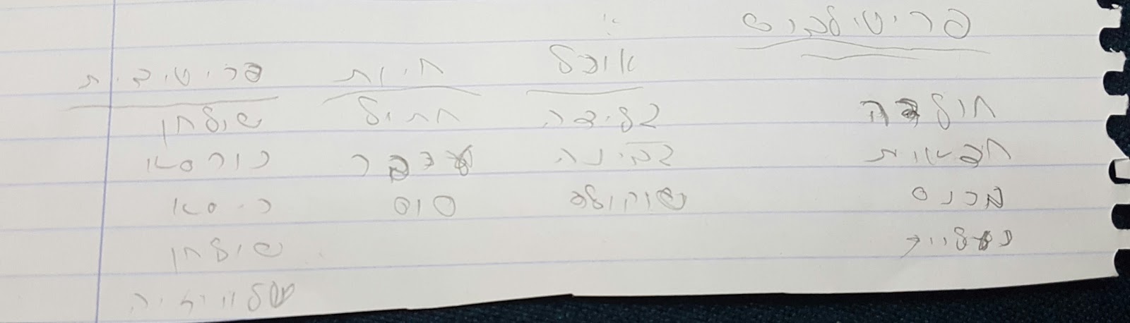 – בסופר שמסדרים את המוצרים בשקיות לפי נושאים שונים כמו מוצרי חלב, ניקיון וכו’ (ואז אחד התלמידים הוסיף שכל הסופר מסודר לפי מחלקות כדי שנחסוך בזמן בקניות ולא נשכח שום דבר).