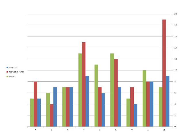 כחול- מספר הפריטים שהתלמידים זכרו בפעם הראשונה.