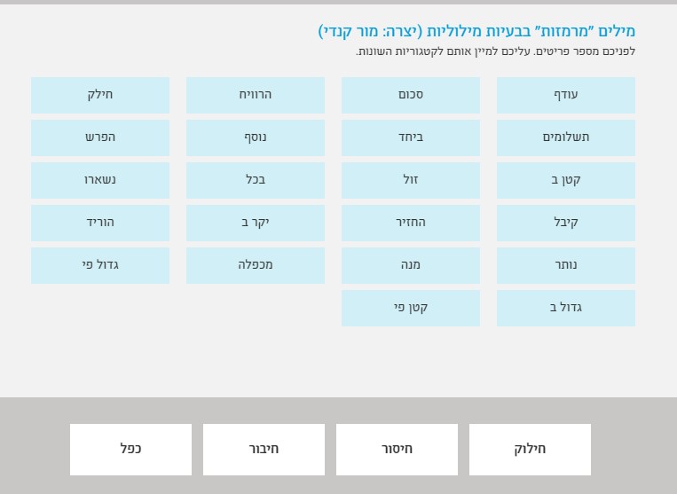משחק שבו התלמידים רק צריכים לסמן את הפעולה המתאימה: