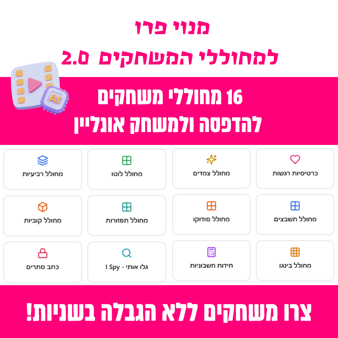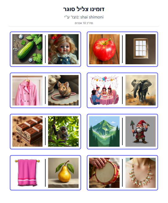פשוט מזינים תמונות או מילים, והמחולל יוצר עבורך משחק מוכן להדפסה בתוך כמה שניות.